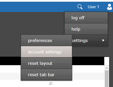 When authenticator use is enabled by the system administrator, users may setup their authenticator app in the Quillix Capture Web Client. Start by opening the 'account settings' window. This can be done by clicking the user name field in the top right corner of the window. This will display the user menu. Select 'settings', then 'account settings'.