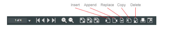 The Quillix Document Viewer provides capabilities for changing the contents of a batch or document. This is typically referred to as Batch/Document QC or Quality Control, because it gives the user the ability to replace pages of poor capture quality, or to insert or append pages that were missed when the batch or document was created. In additional to providing for basic navigation, the Document Viewer Toolbar also provides capabilities for QC operations. The QC operations available are: