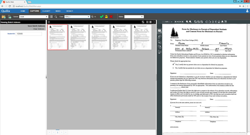 The Image Mode is designed for use when individual pages need to be viewed while they are being scanned or imported. The Image Mode will display the pages of a batch as thumbnail images, and will display the selected thumbnail image in the image viewer for editing as required.