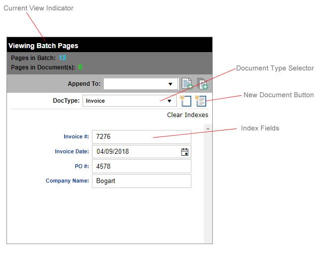 Batches are created in Quillix from scanned paper or imported files so they can be manually organized into documents, and "indexed" with manually keyed data from the scanned images or other external sources. The Index Panel provides a wide set of tools that can be used to efficiently organize batch (unassociated) pages into structured documents. The process of transforming a Batch of unassociated pages into structured documents is usually called Indexing.