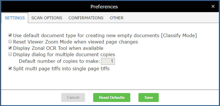 | Display Zonal OCR Tool when available | This setting will cause the Zonal OCR Tool to be displayed for document types that have OCR zones configured. Turning this setting off will prevent the Zonal OCR Tool from being displayed, even if OCR zones are defined. |