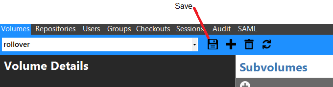 To add a new Subvolume, click on the Add a new Subvolume button on the toolbar on the Volumes tab.