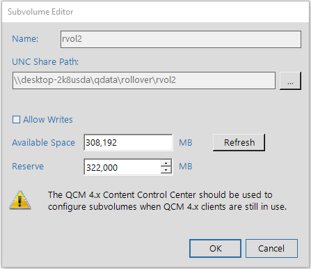 Provide a name and path for the Subvolume and select whether or not to allow QCM to write to the Subvolume. If you use the browse button (