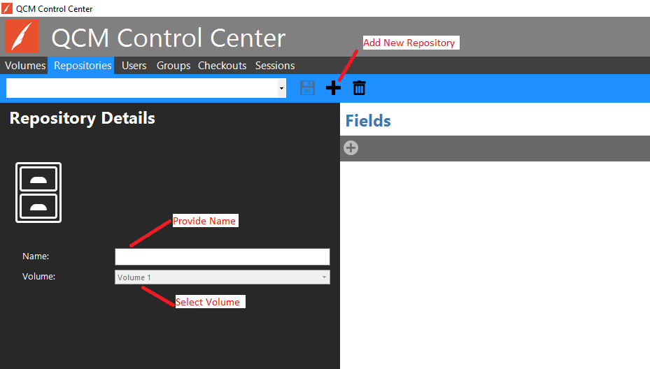 To add a new Repository, click on the Add New Repository button on the toolbar on the Repositories tab. Provide a name for the Repository and select the correct Volume to use.