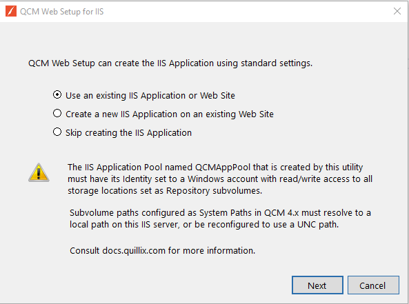 The IIS Configuration Utility will create a new Application Pool for the use of the QCM Web Server. This Application Pool is named QCMAppPool.